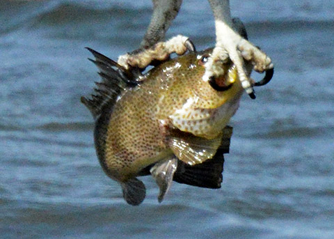 ![]() Caught by an Osprey, Pandion haliaetus, at Bolsa Chica Ecological Reserve, Huntington Beach, Orange County, CA. 5/11/2021. © Peter J. Bryant |