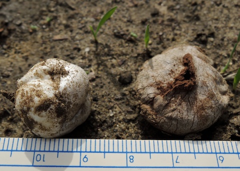 ![]() Older specimens ejecting spores through break in ball. cm scale. Wood Canyon, Aliso and Wood Canyons Wilderness Park, Orange County, CA. 12/4/12. © Joanne Schwartz |