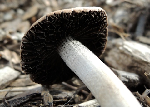 In new mulch over sand in irrigated strip along roadside. 17th St., Santa Ana, Orange County, CA. 3/20/14