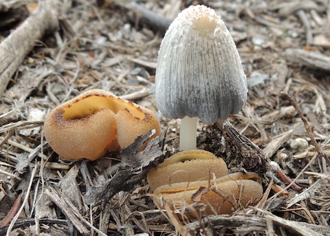 ![]() With Coprinus sp. In new mulch.17th St. E. of Esplanade, Santa Ana, Orange County, CA. 3/20/13. © Joanne Schwartz. |