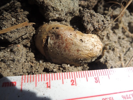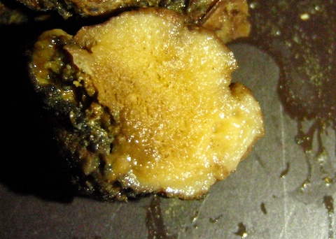 Hypogeous (underground) Fungus Rhizopogon colossus In old dirt and gravel residential driveway, 25’ to 30’ from mature three-needle pine tree. La Colina Rd, Tustin, Orange County, CA. 2/13/13. © Joanne and Doug Schwartz. Family Rhizopogonaceae Back to Fungi of Orange County, California |