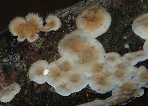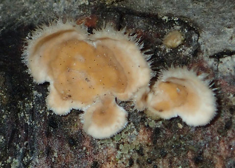 Corticioid Fungus Stereum ochraceoflavum Family: Stereaceae Present in the Americas and Europe Back to Fungi of Orange County, California |
