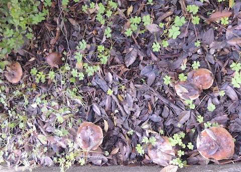 Pungent Slippery Jack Suillus pungens Family: BoletaceaeIn pine needle mulch in curbside garden on La Colina Street in Tustin, Orange County, CA. 12/25/12. © Joanne Schwartz. Back to Fungi of Orange County, California |