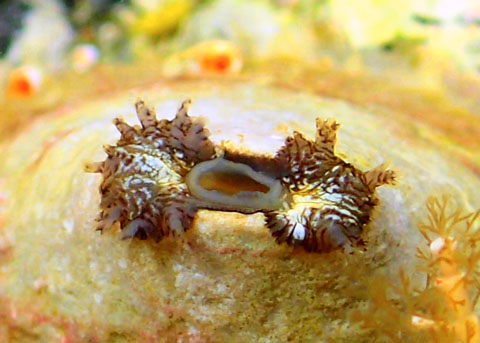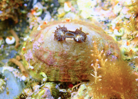 Excurrent siphon at the apex of the shell distinguishes this limpet from all the other local limpets. |