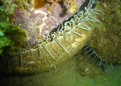 ![]() Mantle fringe. Shaw's Cove, Laguna Beach, Orange County, CA. 4/21/18. © Peter J. Bryant |