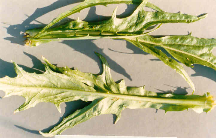 acute, not succulent, often toothed or pinnately lobed with broad rachis, the