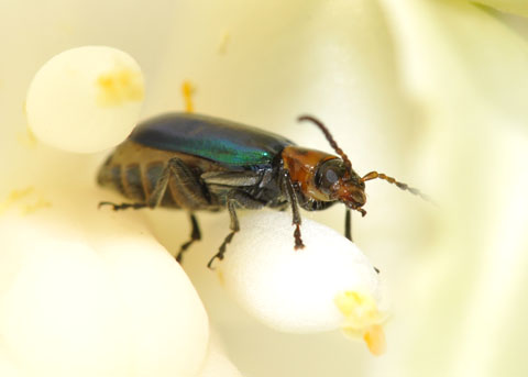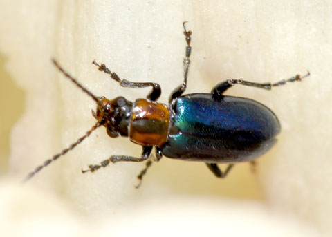 Skeletonizing Leaf Beetle Pseudoluperus maculicollis Coleoptera: Chrysomelidae Identified by E. G. Riley Back to Coleoptera index page |