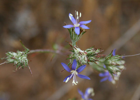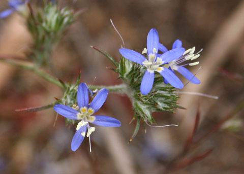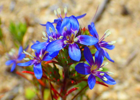 Sapphire Wool Star Eriastrum sapphirinum A common annual of grasslands and openings in sage scrub and chaparral especially in the Santa Ana Mountains but also found in San Joaquin Hills and mountain foothills. Native to Southern California Back to Polemoniaceae of Orange County, California |