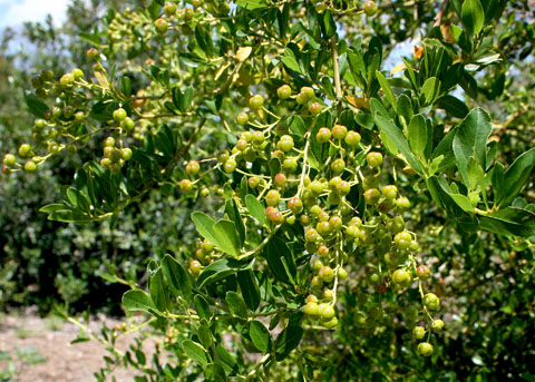 ![]() Fruits consist of 3 rounded apical segments without horns. Seaview Park, Aliso and Wood Canyons Wilderness Park, Laguna Niguel, Orange County, CA. 5-29-11. © Joan Avise. |