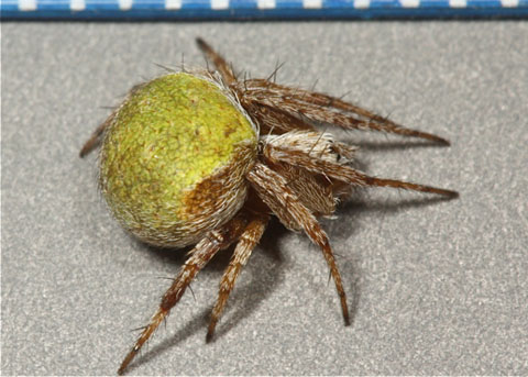 Green Orb Weaver Araneus detrimentosus Araneae: Araneidae Found in Coastal CA, southern AZ, eastern TX, southern tip of MS & AL and northwestern tip of FL |